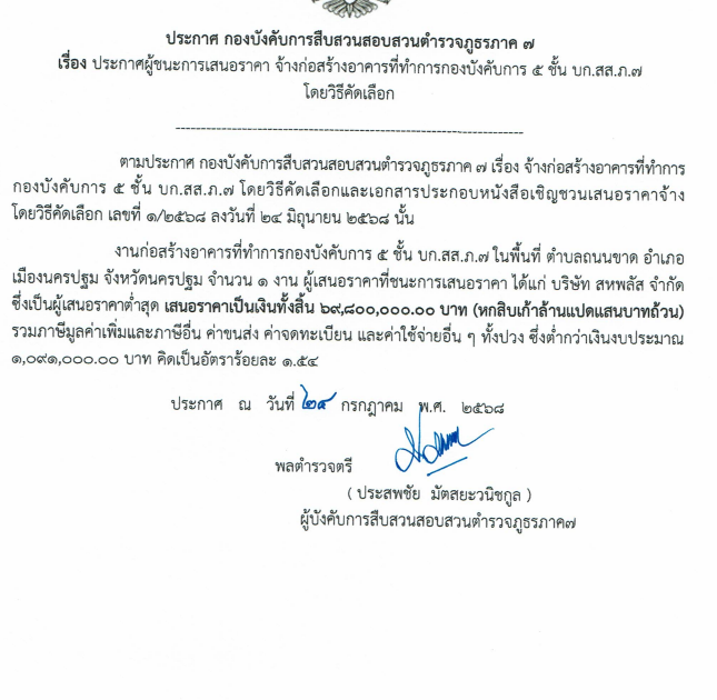 ประกาศผู้ชนะการเสนอราคา